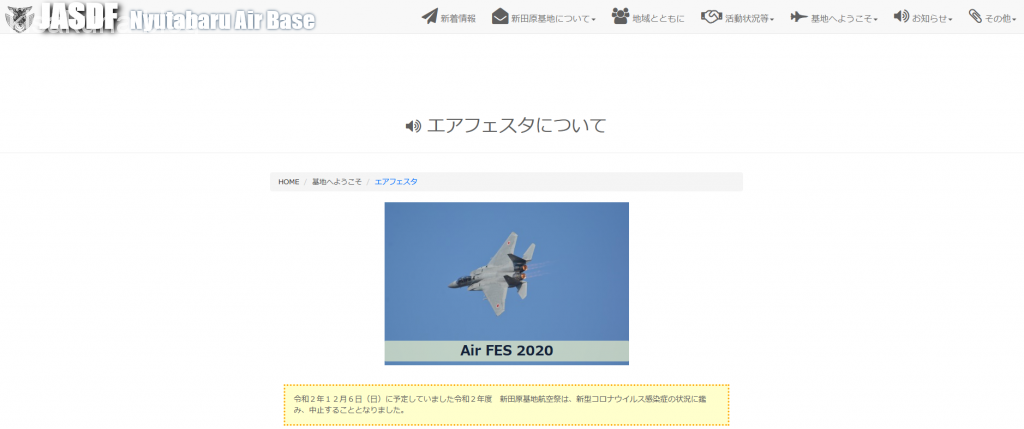 令和2年度 新田原基地航空祭(エアフェスタ2020) 中止が決定 2020年7月