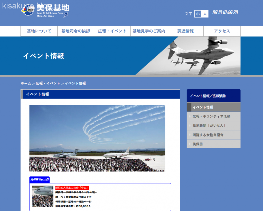 令和2年度 美保基地航空祭 実施しない決定 2020年4月