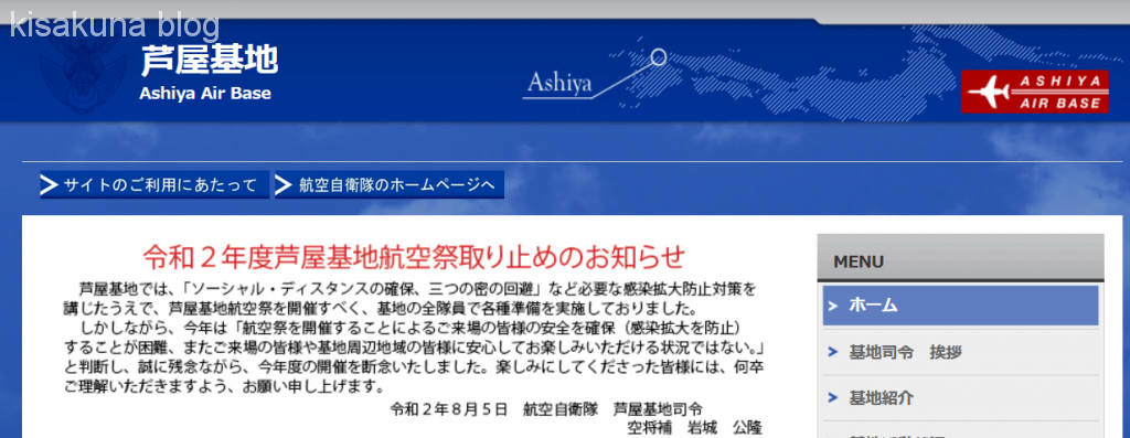 令和2年度 芦屋基地航空祭 取り止め決定 2020年8月