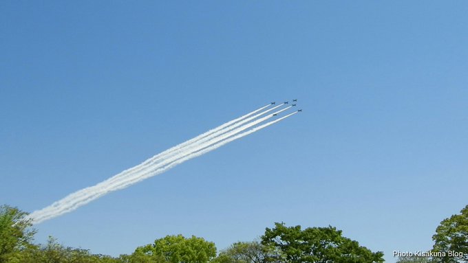 既にブルーインパルス展示飛行が始まってるがツイートできない💦