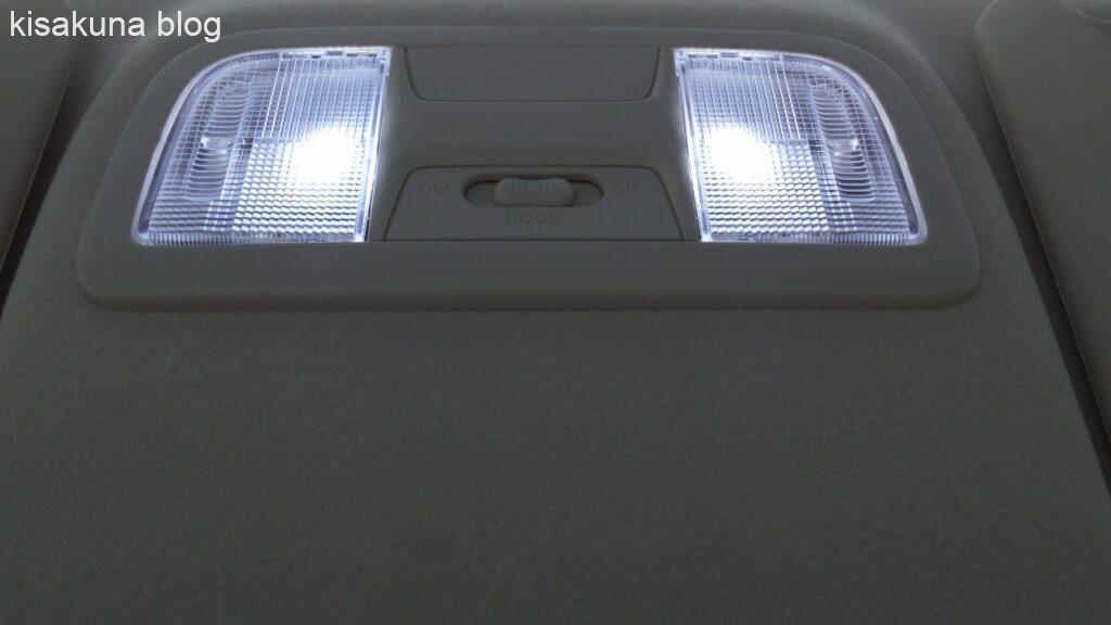 中・後席のLEDは球が6個なんで大丈夫かな?とは思ったが、暗いとは思わないな。この辺が分からないんだよね、球の数と明るさの関係。少ない球で高輝度か?多い球で低輝度か?とか。球が多くて高輝度ならもっと明るいはずだけどそれなりに電力消費するだろうし高価になる。