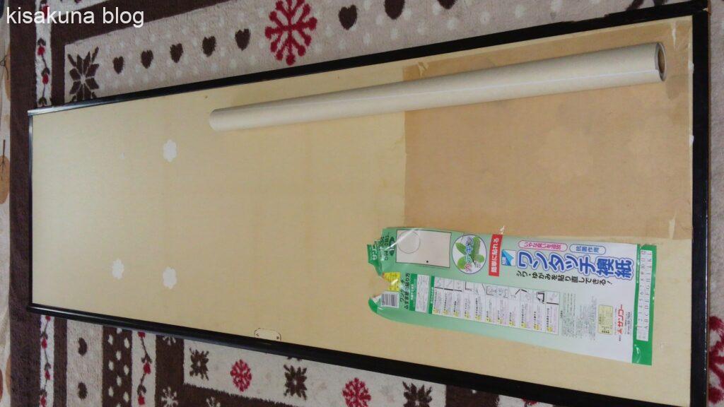 補修は前日にやったのですっかり乾いてからワンタッチ襖紙を貼ることができた 🙂