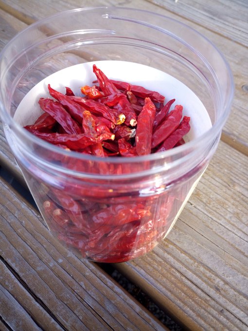 唐辛子を放置してたら、自然と鷹の爪になっとるやん! なんだわざわざ乾燥させんでもいいのか😶 一生使っても余るくらい収穫したった😅 pic.twitter.com/V4CqUu2XZi