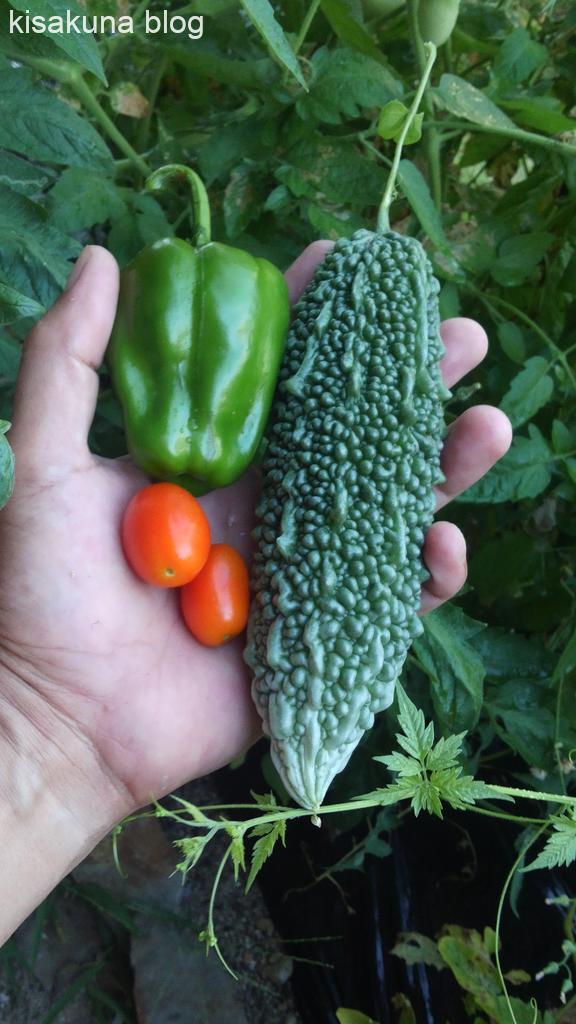 今朝の収穫。 大玉トマトは早めに採らないと割れてしまう🍅 フルーツトマトとゴーヤの実がようやくなりだした。 pic.twitter.com/XKXGCH4ncn