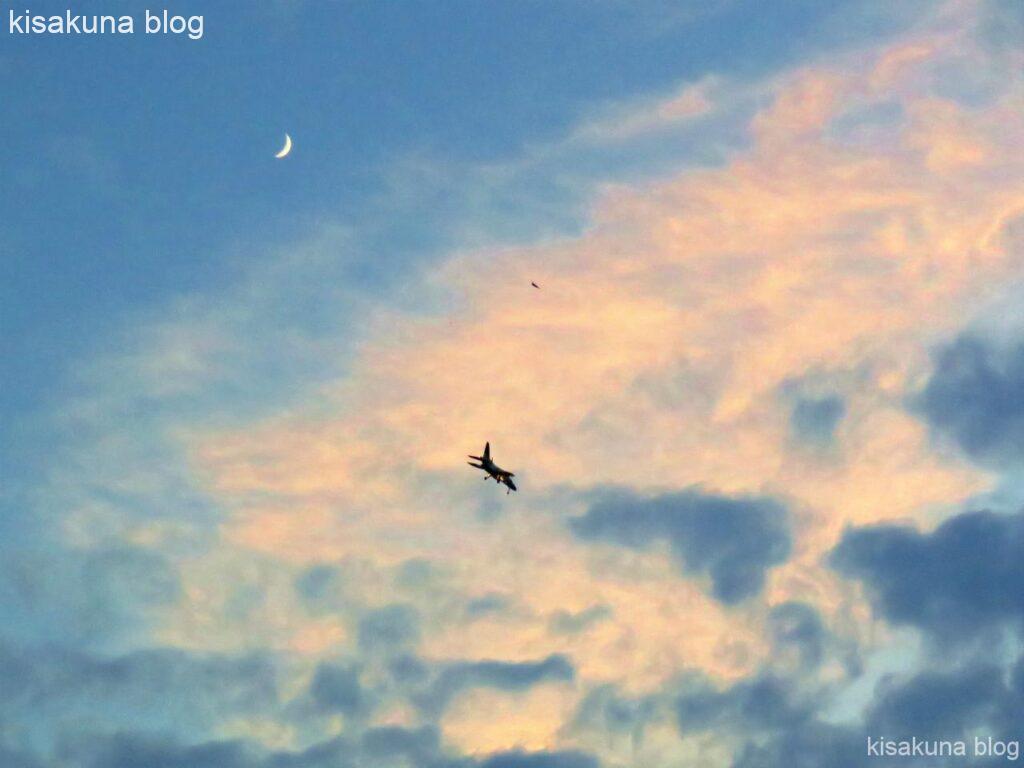 夕暮れT-4レッドドルフィン🐬夜間飛行訓練✈ 月と鳥との見事なトライアングル!(そうか?w) 芦屋基地RWY30 pic.twitter.com/exBRfyg8Ys