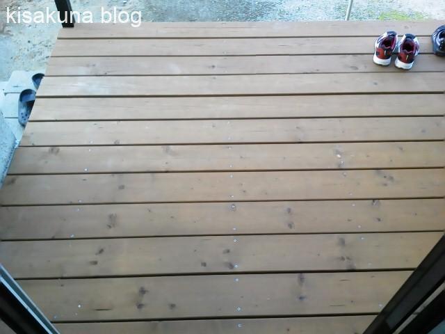 庭側の雨風にさらされている外側板3枚は1年前に補修したにもかかわらず、再びひび割れが目立つようになってきた。この部分は毎年塗装などして補修が必要やね。