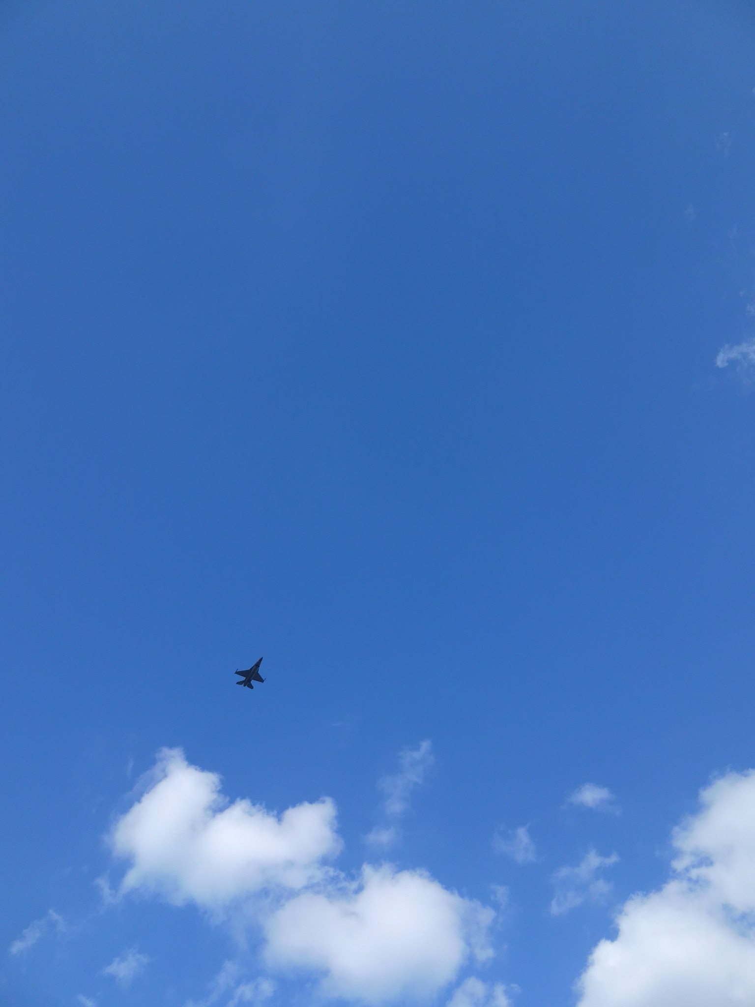 おお、いいねぇ~。間近に見ることができるし音も迫力。望遠レンズを抱えたカメラマン達はパシャパシャパシャパシャ。すごく長い・大きいレンズを持っている人も居る。皆さんすごいですねぇ~! アチキもスマホカメラで撮ってみたが、機体が小さくしか映らないのでダメだ。やはり記録程度ですな。
